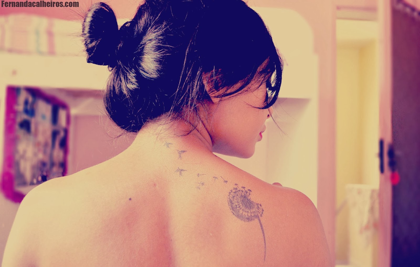 Eu acho lindo tatuagem de andorinhas, acho que passam uma ideia de liberdade esperança e paz e tem tudo a ver comigo, o dente de leão também me passa essa sensação de liberdade, e também representa o otimismo, sonhos, luz espiritual, acho que os desenhos se combinam então decidi juntar os dois, as andorinhas ficaram como continuação das pétalas se desfazendo. Reza a lenda que quando assopramos uma flor dente de leão podemos fazer um pedido sobre o amor ambicionado, se as petalas soprarem de volta em nossa direção, teremos o pedido atendido. Em fim, fazer essa tatuagem teve tudo a ver com o momento que eu estava vivendo, não ficou exatamente como eu queria, com o dente de leão menor, mais próximo do ombro, e com mais pétalas e andorinhas, mas eu gostei muito. Penso sim em fazer outras tatuagens no futuro com o mesmo tatuador rs.